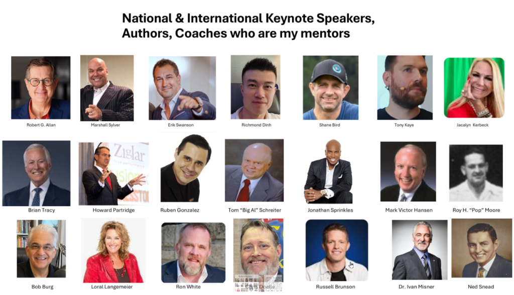 Brian Tracy, Howard Partridge, Ruben Gonzalez, Tom “Big Al” Schreiter, Jonathan Sprinkles, Mark Victor Hansen, Roy H. “Pop” Moore