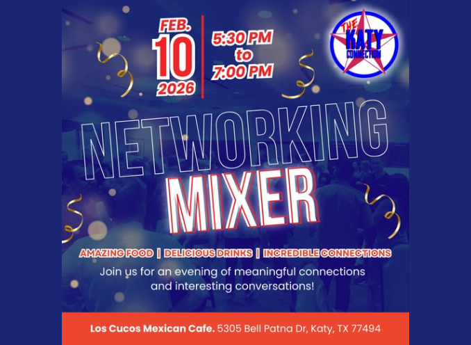 Tues Feb 10 Katy Connection Mixer 5:30 PM Loc Cucos Mexican Resturant 5303 Bell Ptna Dr., Katy Go to https://www.facebook.com/search/top/?q=katy%20connection